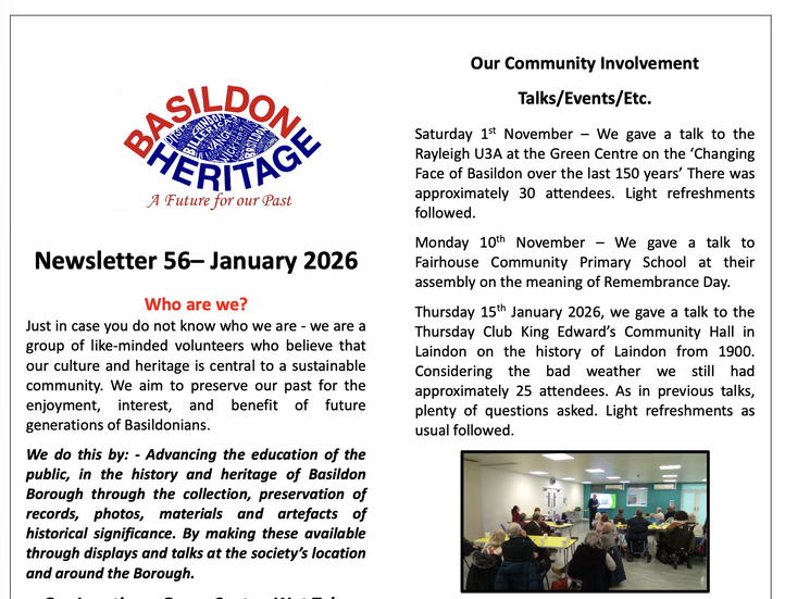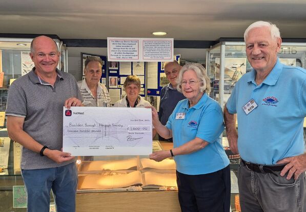 David Bourner, volunteer researcher at BBHS and author of two local history books, handed over a cheque for £1600 to Basildon Heritage last week.